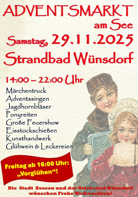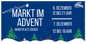 Der Zossener Markt im Advent öffnet am Samstag, dem 6. Dezember, von 12 bis 21 Uhr und am Sonntag, dem 7. Dezember, von 12 bis 19 Uhr auch in diesem Jahr wieder seine Pforten!