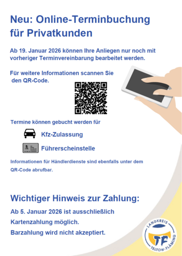 Neu im Straßenverkehrsamt TF: Terminbuchung, bargeldlose Zahlung, neue Sprechzeiten
