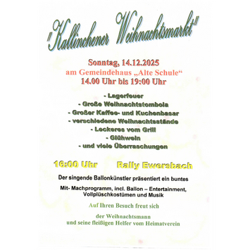 Kallinchener Weihnachtsmarkt am 14. Dezember
