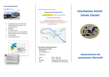Am Samstag, dem 24. Januar 2026, öffnet die Geschwister-Scholl-Schule Zossen – Gesamtschule mit gymnasialer Oberstufe – in der Zeit von 9 bis 13 Uhr ihre Türen für interessierte Besucherinnen und Besucher.
