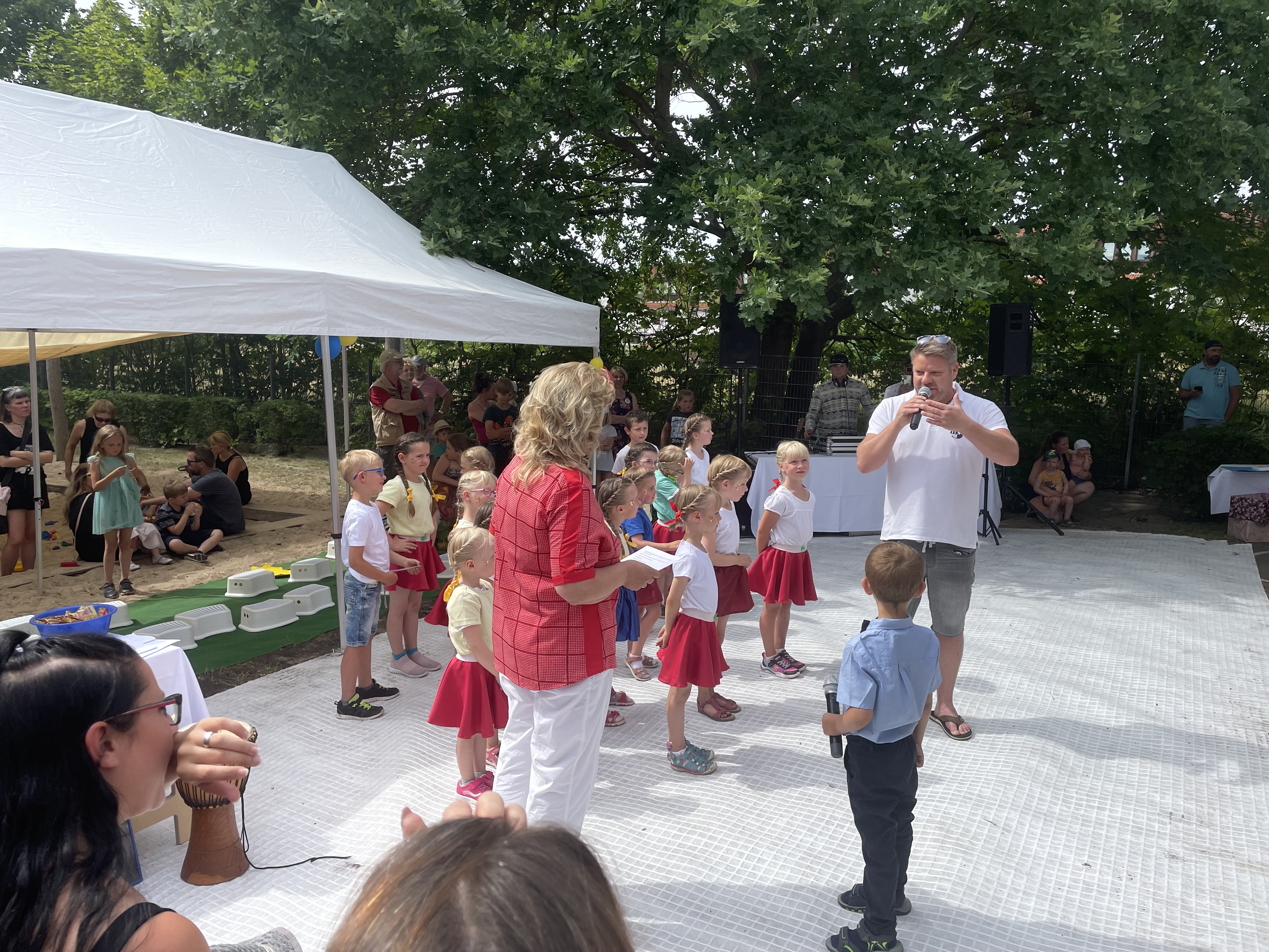 Die Kita „Bummi“ in Zossen feierte am Freitag, dem 17. Juni, ihren 50. Geburtstag. Mehrere hundert Besucher, Kinder und Eltern ließen es sich nicht nehmen, der Kita bei strahlendem Sonnenschein ihre Glückwünsche zu überbringen. Die Bummi-Kinder tanzten sich in einem Kulturprogramm durch fünf Jahrzehnte Kindergartengeschichte. Angefangen mit dem „Bummi Bummi Lied“ bis hin zum „Gummibärenbande Lied“, bei dem unter einem lauten „Juhuu“ Gummibärchen ins Publikum flogen. Für Speis, Trank und Spiel war auf dem über 7000 Quadratmeter großem Außengelände der Kita alles aufgeboten. Ein Höhepunkt des Programms war das eigens komponierte „50 Jahre Kita „Bummi“-Lied“.