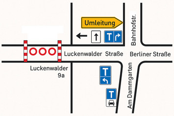 Straßensperrung „Zum Bahnhof“ in Wünsdorf
