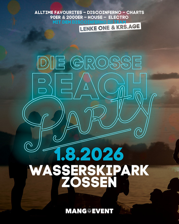 Es wird heiß, es wird wild, es wird unvergesslich - Die große Beachparty am Strand des Wasserskipark Zossen steht an! Der Sonnenuntergang atemberaubend, der Strandsand warm und die Drinks eiskalt. Am Samstag 01. August verwandeln wir den Badestrand erneut in die größte Tanzfläche der Region!