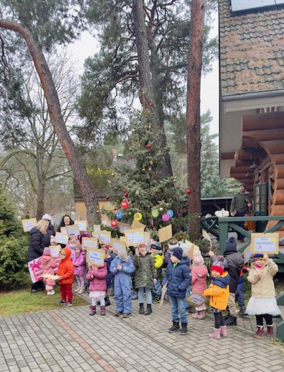 Als Dankeschön reisten rund 30 Kinder mit dem „Kids on Tour“-Bus aus Zossen an, der vom Förderverein ScHorKi gesponsert wurde, sangen „In der Weihnachtsbäckerei“ und überreichten ein gemaltes Bild einer großen Knobi-Knolle – passend zum Zweitnamen des Restaurants, dem „Knobi-Haus“.