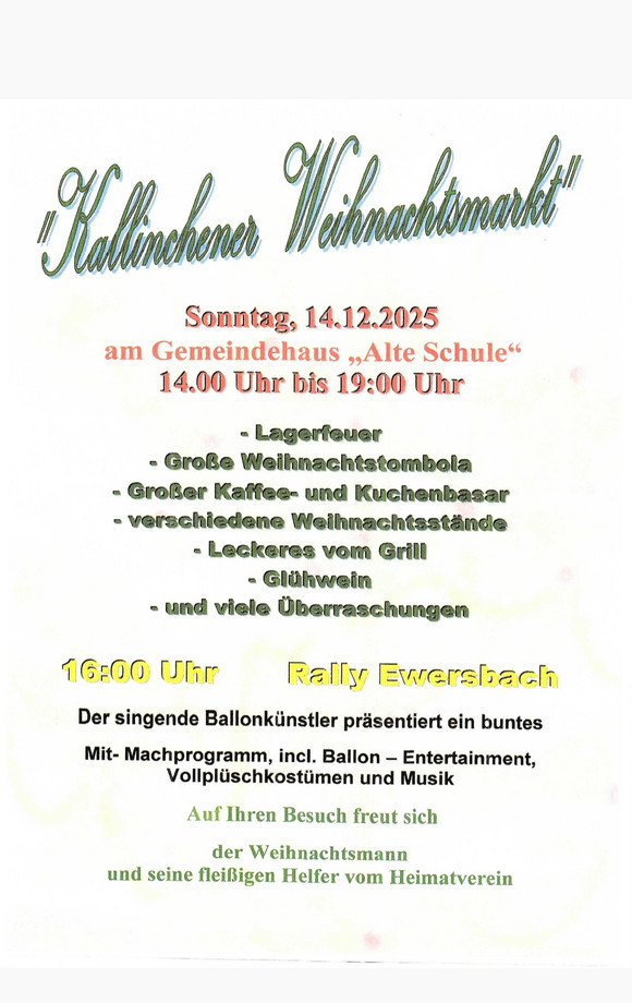 Veranstaltungsort: Am Gemeindehaus "Alte Schule", 15806 Zossen OT Kallinchen