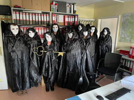 Rechtzeitig um „11 Uhr 11“ - zum Karnevalauftakt, starteten die Zossener Narren und Närrinen am Freitag in ihre 5. Jahreszeit. Pünktlich rollten die festlich geschmückten Wagen auf den Marktplatz und die Karnevalisten, allen voran ihre Prinzenpaare, erklommen die Bühne für ihre feierliche Eröffnungsveranstaltung. Bei zünftiger Musik und dem lauten Knall der Konfettikanone nahmen die Rituale dann ihren Lauf. Es galt das Rathaus zu erstürmen und die Bürgermeisterin zur Herausgabe des Schlüssels zu „nötigen". Die jedoch war gar nicht einfach zu finden. Hinter der aufgerammten Rathaustür fand sich zunächst nur eine mysteriöse maskierte Gestalt, und nicht die erhoffte Bürgermeisterin mit ihrem Rathausschlüssel. Weitere fünf gleich maskierte Damen konnten dann von den Karnevalisten auf dem Marktplatz und in den angrenzenden Geschäften aufgefunden werden.