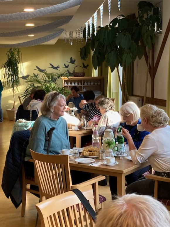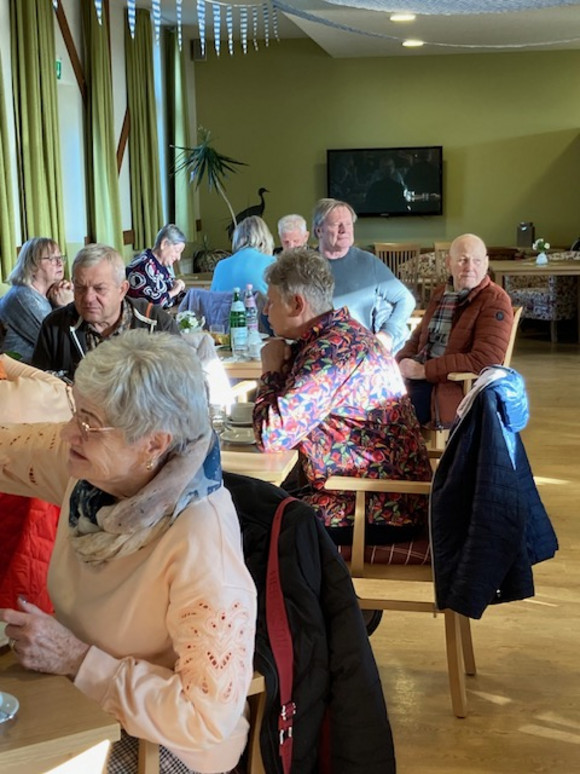 Die gemütliche Kaffeepause mit leckerem Kuchen in den Kranichstuben wurde für anregende Gespräche genutzt, und neue Bekanntschaften wurden geknüpft. Bevor es dunkel wurde, erreichte der Bus die letzten Ortsteile wie Schöneiche und Kallinchen. Dann ging es zurück nach Wünsdorf, vorbei an der Gemarkung Zehrensdorf.