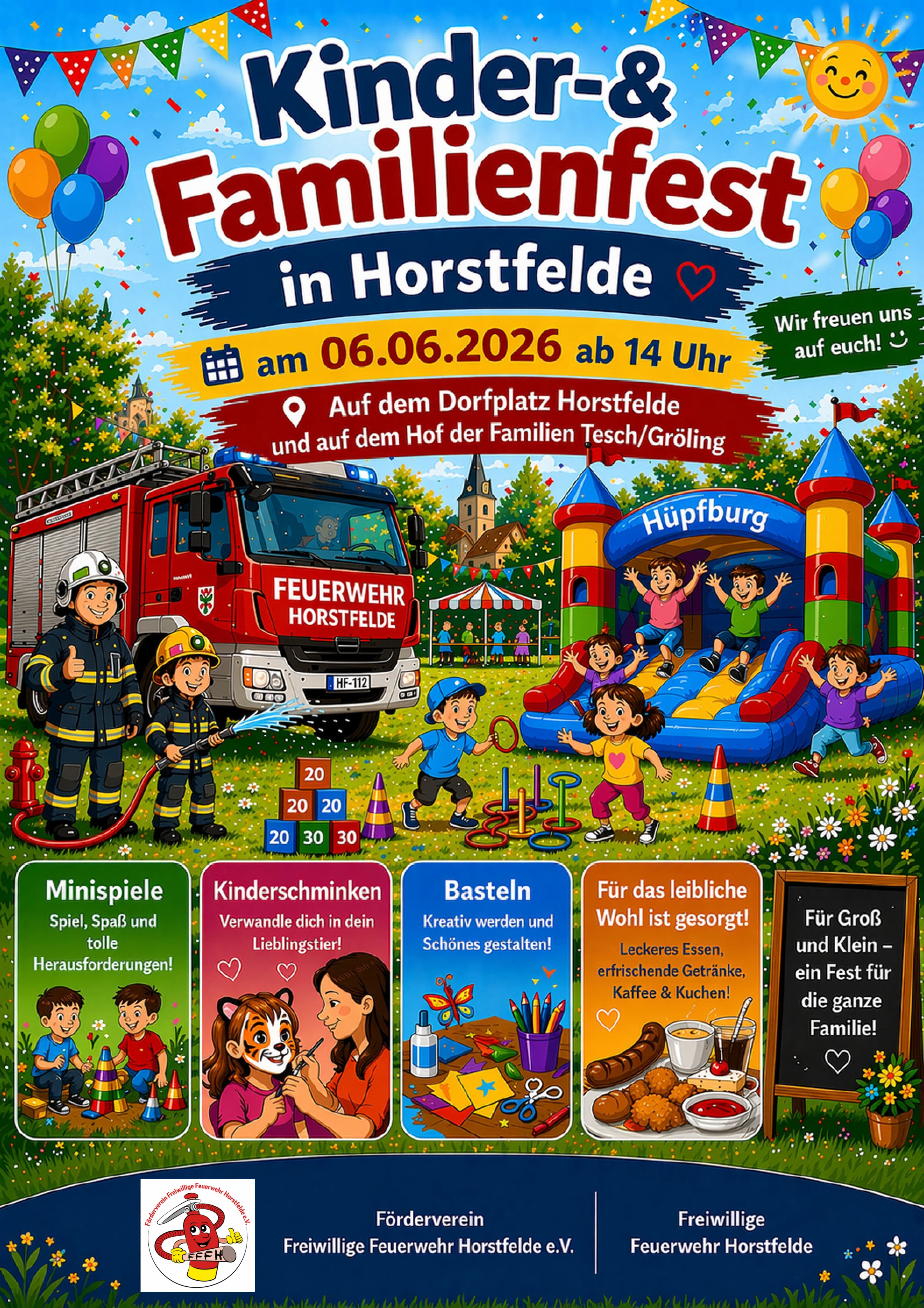 Für Groß und Klein - ein Fest für die ganze Familie auf dem Dorfplatz Horstfelde und auf dem Hof der Familien Tesch / Gröling.