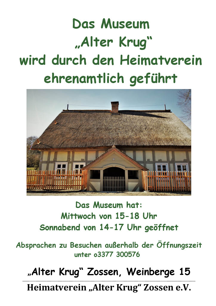 Öffnungszeiten des Museum "Alten Krug"