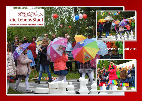„Lebenslust statt Altersfrust“ ist das Motto eines vom Verein „Die Lebensstadt“ initiierten und mit Fördermitteln unterstützten Projektes, für das sich die Mitglieder des Vereins seit Monat engagiert haben. Entstanden ist ein hübscher Outdoor-Spielplatz mit Flächen für Brettspiele wie Schach, Dame und Mühle sowie Sitzmöglichkeiten mit Tisch und Bänken. Offiziell eröffnet wurde der Platz am 15. Mai 2019 auf dem Gelände des Alten Krankenhauses, Weinberge 57, in Zossen. Kinder der städtischen Kita „Bummi“ erfreuten die Gäste mit einem kleinen Programm, zudem gab es Kaffee und Kuchen. Eingeweiht wurde auch eine Sponsorentafel. Die Spielflächen werden im Mai bis September in den geraden Wochen jeweils zwischen 14 und 17 Uhr für Interessierte zur Verfügung stehen und können auch vorab über eine Anmeldung reserviert werden.