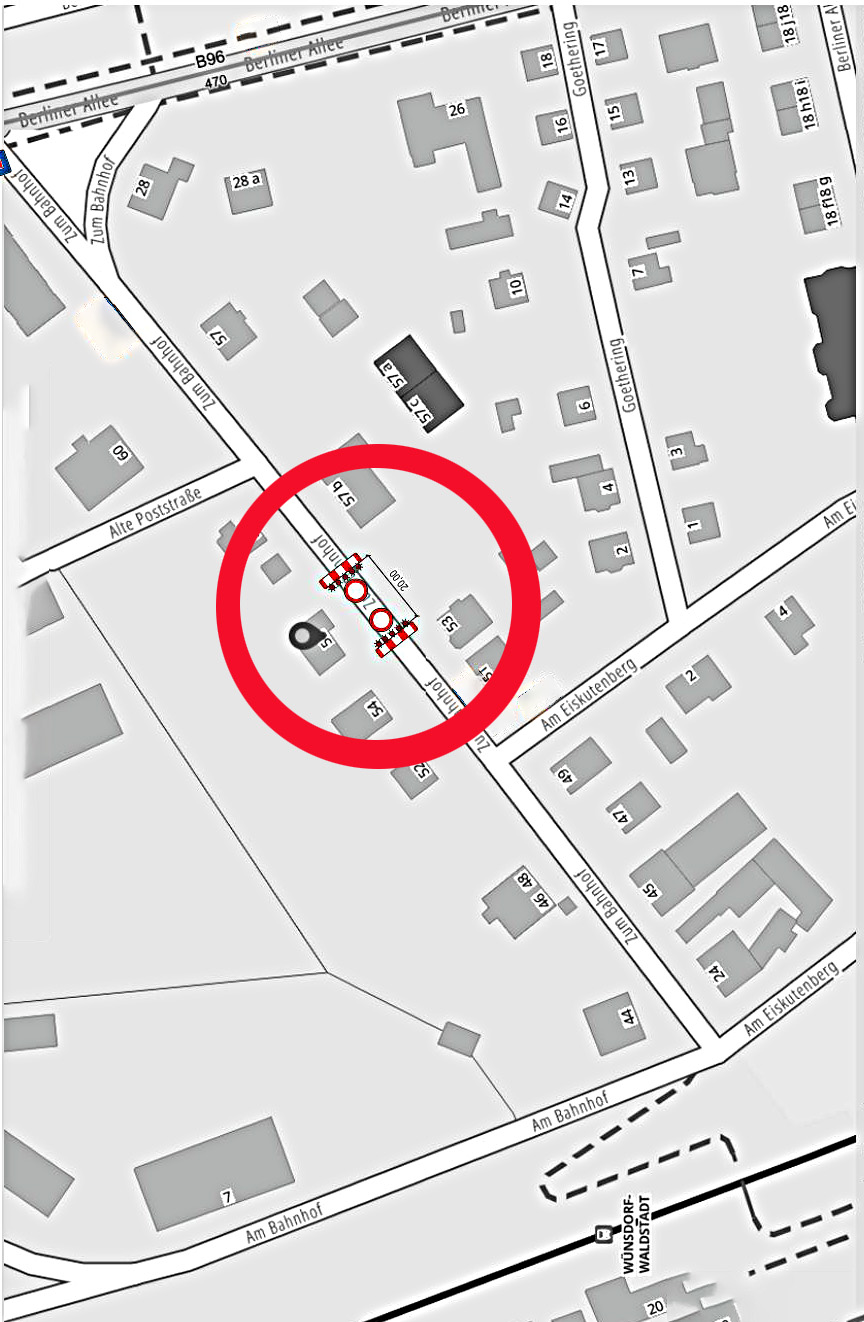 Straßensperrung „Zum Bahnhof“ in Wünsdorf