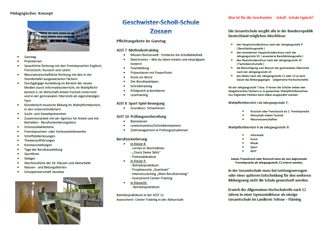 Am Samstag, dem 24. Januar 2026, öffnet die Geschwister-Scholl-Schule Zossen – Gesamtschule mit gymnasialer Oberstufe – in der Zeit von 9 bis 13 Uhr ihre Türen für interessierte Besucherinnen und Besucher.