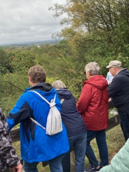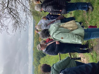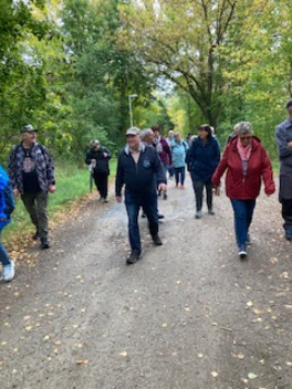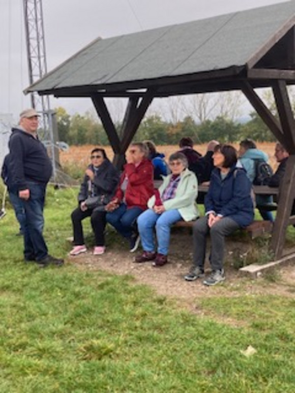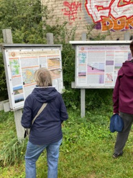 Gemeinsam mit Herrn Wendt vom Fördervein „Heimatstube Sperenberg“ machten sich die Teilnehmenden auf den Weg. In der Gipsstraße 12 in Sperenberg beginnt der Boden-Geo-Pfad. Er führt durch eine wunderschöne, idyllische Landschaft. Dass diese eine bewegte Geschichte zu bieten hat, ist manchmal schwer zu glauben. Mehrere Schautafeln geben Auskünfte über die Entstehung und Beschaffenheit des Bodens und über die Geschichte der Landschaft. Sie lassen alte Zeiten auferstehen und zeigen, wie sich Tagebaulandschaften in die Idylle verwandeln können, in welcher der Betrachter sich gerade befindet. So wanderte die FaBB-Gruppe auf der ehemaligen Bruchkante des Gipstagebaus, dem heutigen Panoramaweg, entlang bis hin zum höchsten Punkt des Rundwanderweges, dem 79,8 Meter hohen Gipsberg.