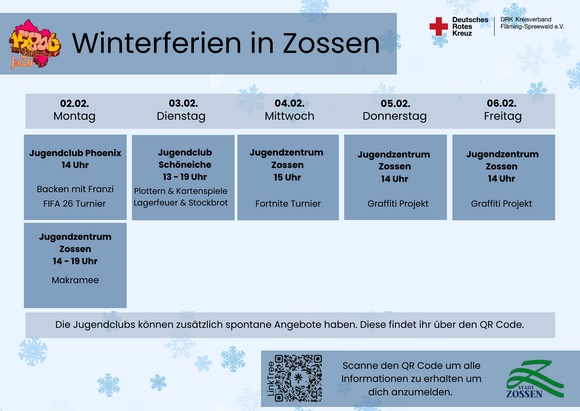 Auch in den kommenden Winterferien gibt es von der Jugendkoordination Zossen und den Jugendklubs der Stadt viele spannende Angebote. Wie wärs also mit einem Fortnite-Turnier, einem der Graffiti-Projekte oder gemütlich Karten spielen, Lagerfeuer und Backen?