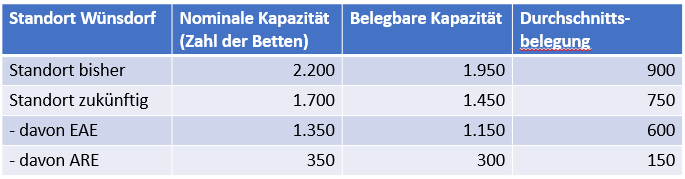 Die Standortkapazität wird insgesamt um effektiv ca. 500 Plätze verringert.