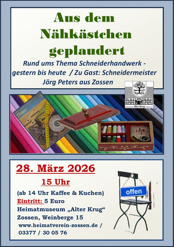 Veranstaltungsort: Heimatmuseum "Alter Krug" Weinberge 15, 15806 Zossen